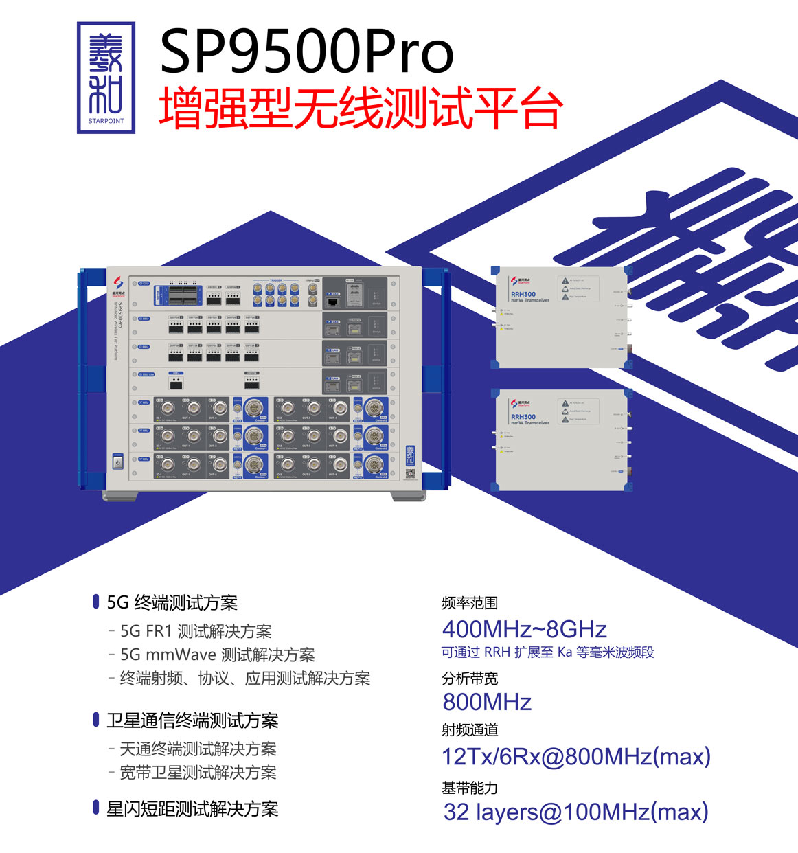 SP9500Pro增強型無線測試平臺是北京星河亮點技術股份有限公司為全面滿足5G-A、天通與寬帶衛(wèi)星通信、星閃短距通信等測試需求自主研發(fā)的高性能儀表產品,可被廣泛應用于無線通信終端研發(fā)、測試、認證以及后期維護等環(huán)節(jié),是當前國內唯一可支持蜂窩、衛(wèi)星、短距多種無線通信制式的信令測試儀表。